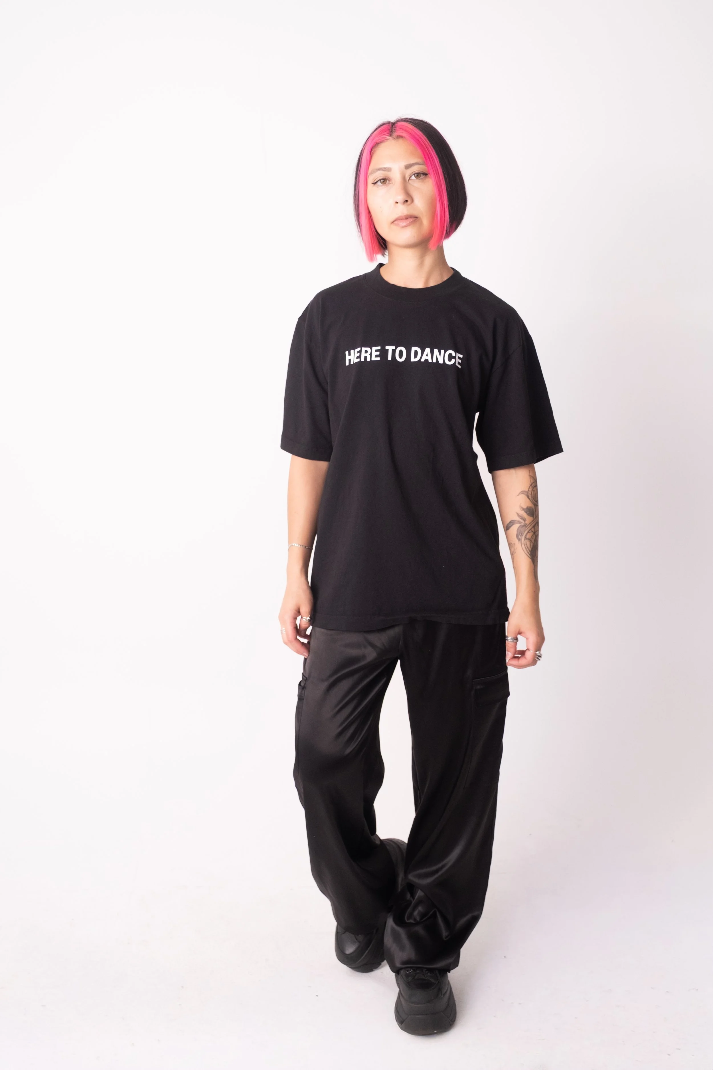 HERE TO DANCE is more than a shirt. It’s a way to spread positive messaging on the dance floor, to lead by example. And at the end of the day, isn’t dancing and yelling your heart out to music you love one of greatest feelings? It’s time to let that energy radiate.